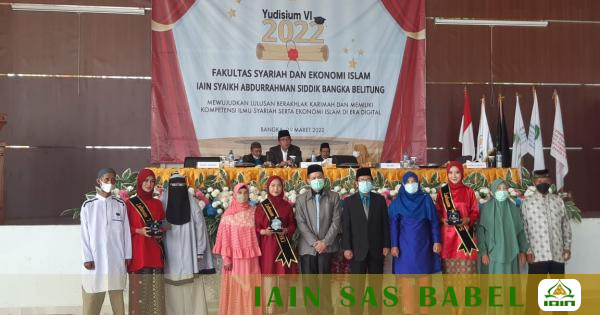 IAINSASBABEL.AC.ID - Bangka. Yudisium Periode VI Fakultas Syariah dan Ekonomi Islam IAIN Syaikh Abdurrahman Siddik Bangka Belitung dilaksanakan di Aula Gedung Terpadu pada Selasa, 29 Maret 2022 dengan Tema Mewujudkan Lulusan Berakhlak Karimah dan Memiliki Kompetisi Ilmu Syariah serta Ekonomi Islam di Era Digital.