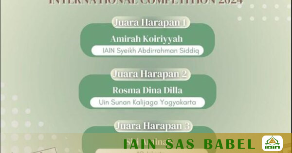 IAINSASBABEL.AC.ID BANGKA Mahasiswi Program Studi Pendidikan Islam Anak Usia Dini (PIAUD) IAIN Syaikh Abdurrahman Siddik Bangka Belitung berhasil meraih prestasi gemilang dengan meraih juara harapan 1 pada International Competition Lomba Desain Poster yang diadakan pada tanggal 10-16 September 2024 lalu secara online yang di umumkan pada hari Minggu (22/9/2024).