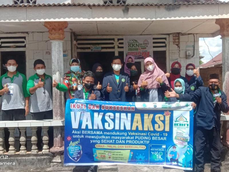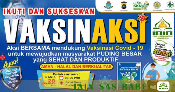 IAINSASBABEL.AC.ID - BANGKA. Untuk mendukung kebijakan program dari Pemerintah dalam upaya penanganan Pandemi COVID-9, maka pada tanggal 28 Oktober 2021 dilaksanakan kegiatan vaksinasi secara massal di Balai Desa Puding Besar. Kegiatan vaksinasi massal ini diselenggarakan oleh Pemerintah Desa Puding Besar, Polsek Puding Besar dengan Puskesmas setempat, bekerjasama dengan KKN IAIN Syaikh Abdurahman siddik Bangka Belitung, mahasiswa KKN PGRI Palembang, serta Irmas dan Karang Taruna Puding Besar.