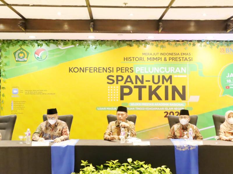 Jakarta - Menteri Agama Republik Indonesia Yaqut Cholil Qoumas telah meluncurkan SPAN-UM PTKIN untuk pendaftaran calon mahasiswa baru tahun 2022 (18/1/2022). Seleksi Prestasi Akademik Nasional (SPAN) merupakan pola seleksi yang dilaksanakan secara nasional yang diikuti 58 Perguruan Tinggi Keagamaan Islam (PTKIN) seluruh Universitas Islam Negeri (UIN), Institut Agama Islam Negeri (IAIN) dan Sekolah Tinggi Agama Islam Negeri (STAIN) dalam satu sistem yang terpadu dan diselenggarakan secara serentak oleh Panitia Nasional yang ditetapkan oleh Kementerian Agama. Jalur SPAN-PTKIN ini dilakukan berdasarkan penjaringan prestasi akademik dengan menggunakan nilai rapor dan prestasi lain, tanpa ujian tertulis. Seluruh peserta tidak dipungut biaya pendaftaran.