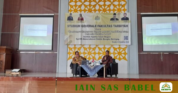 IAINSASBABEL.AC.ID BANGKA. Fakultas Tarbiyah (FT) Institut Agama Islam Negeri Syaikh Abdurrahman Siddik Bangka Belitung ( IAIN SAS Babel ) mengelar acara Studium Generale (Kuliah Umum ) di Aula Gedung Terpadu IAIN SAS Babel, Selasa (24/09/2024).
