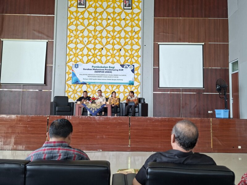 IAINSASBABEL.AC.ID BANGKA.Dewan Eksekutif Mahasiswa (DEMA), Fakultas Syariah Dan Ekonomi Islam ( FSEI) IAIN SAS Bangka Belitung berkolaborasi dengan Dinas Koperasi dan UKM Provinsi Kepulauan Bangka Belitung sukses menggelar acara Pembekalan Bagi Gerakan Mahasiswa Pendamping KUR (GEMPUR UMKM) dalam Pelaksanaan Pendampingan Usaha Mikro dan Kecil Mengakses Kredit Usaha Rakyat pada Kamis, 17 Juli 2025 di Aula Gedung Terpadu.