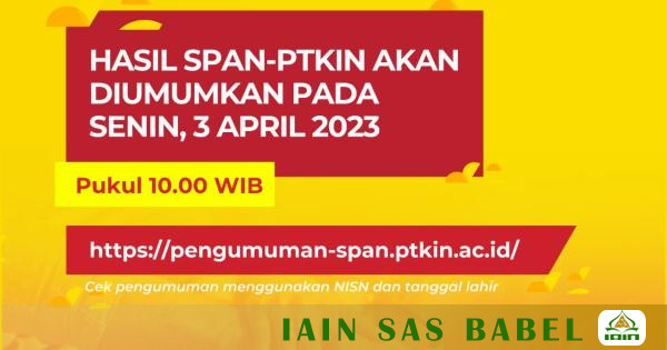 Ketua Seleksi Prestasi Akademik Nasional Perguruan Tinggi Keagamaan Islam Negeri (SPAN-PTKIN), Imam Taufiq, mengkonfirmasi bahwa, “Hasil seleksi SPAN-PTKIN akan diumumkan secara serentak pada hari Senin, tanggal 3 April 2023 pukul 10.00 WIB,”
