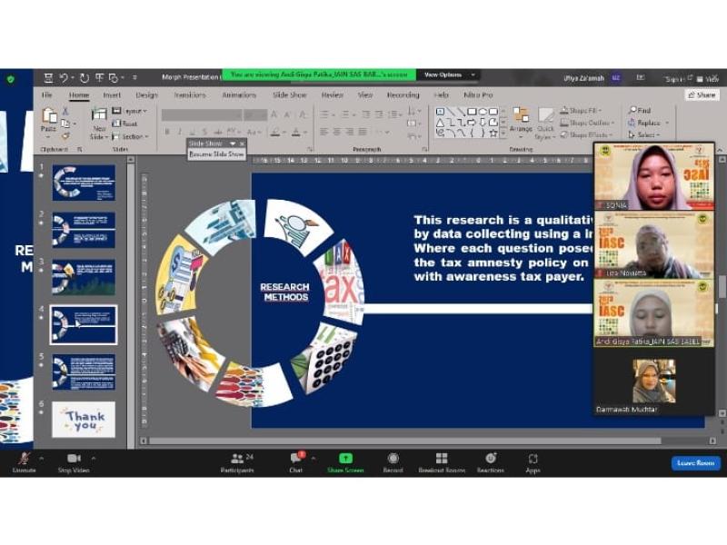 Mahasiswa dan dosen yang mengikuti even ini berasal dari Program Studi Akuntansi Syariah dan Program Studi Perbankan Syariah. Mahasiswa dan dosen ini tampil mempresentasikan makalahnya secara online di hadapan para Reviewer dari berbagai perguruan tinggi seluruh Imdonesia.