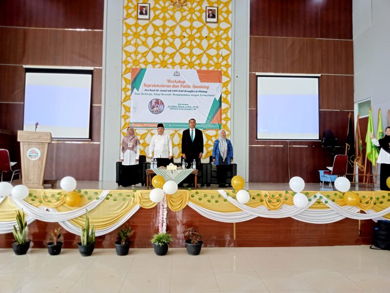 Workshop Keprotokolan dan Public Speaking dihadiri Direktur Ma'had Al- Jamiah H. Winarno, M.H.I., Ratusan Mahasantri Ma'had Al-Jami'ah dan 30 Peserta dari Fakultas dan Unit- unit dan Lembaga di Lingkungan IAIN SAS Babel.(*)