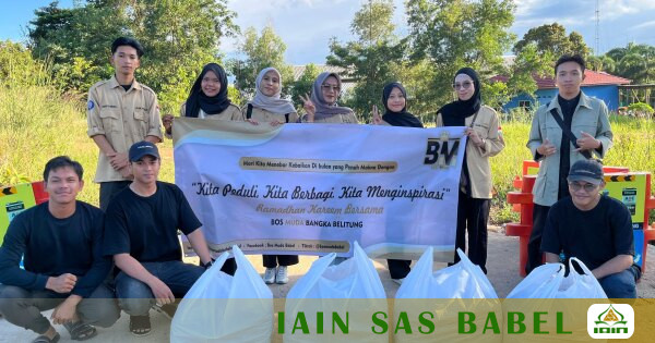 IAINSASBABEL.AC.ID BANGKA. Himpunan Mahasiswa Program Studi Psikologi Islam (HIMA-PI),IAIN SAS Bangka Belitung berkolaborasi dengan Bos Muda Babel berbagi rezeki berupa takjil kepada warga melintas di kawasan Dealova Pangkalpinang.