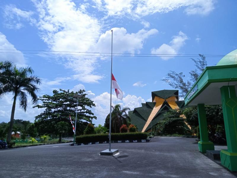 Bangka,30/9/2022. IAIN Syaikh Abdurrahman Siddik Bangka Belitung mengibarkan bendera Merah Putih setengah tiang pada siang hari ini, Jumat (30/9/2022). Pengibaran itu dilakukan untuk memperingati Hari Kesaktian Pancasila. Bendera merah putih berkibar setengah tiang di halaman Gedung Pascasarjana IAIN SAS Bangka Belitung.