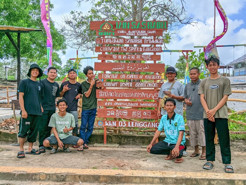 IAINSASBABEL.AC.ID BANGKA. Mahasiswa Kuliah Kerja Nyata (KKN) Kelompok 3 Institut Agama Islam Negeri Syaikh Abdurrahman Siddik Bangka Belitung (IAIN SAS Babel) mendirikan dan memasang plang berbagai bahasa dunia sebagai kenang-kenangan di Desa Lenggang, Kabupaten Belitung Timur ( Beltim), Babel, Kamis (8 /8/ 2024).