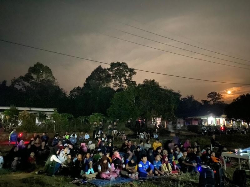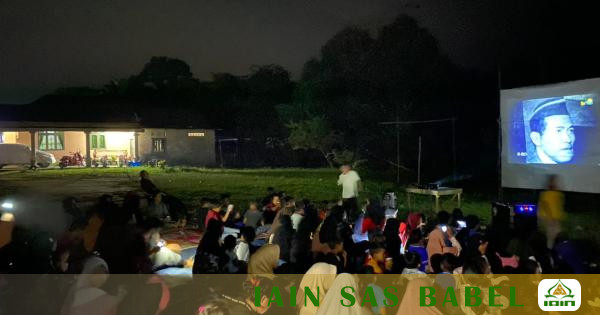 IAINSASBABEL.AC.ID BANGKA TENGAH. Kelompok 3 Kuliah Kerja Nyata (KKN) Institut Agama Islam Negeri (IAIN) Syaikh Abdurrahman Siddik Bangka Belitung mengajak masyarakat Desa Krakas nonton bareng film G30S/PKI di halaman depan rumah Kepala Desa Krakas Minggu Malam, 1 /10/2023