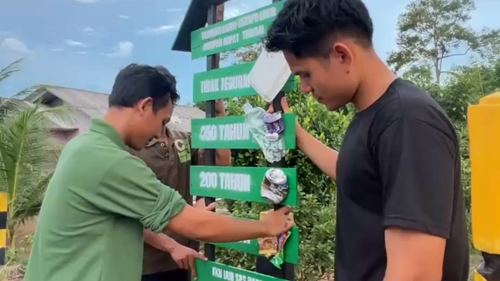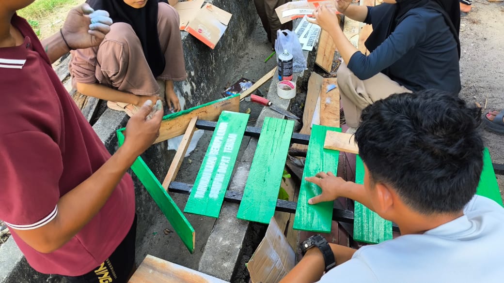 Menariknya, plang edukasi tersebut dibuat dengan memanfaatkan barang bekas dan sampah yang diolah kembali hingga menjadi media informasi yang bermanfaat. Desain plang menampilkan informasi tentang jenis-jenis sampah dan estimasi waktu yang dibutuhkan untuk terurai secara alami, sehingga diharapkan dapat meningkatkan kesadaran masyarakat terhadap dampak sampah bagi lingkungan.