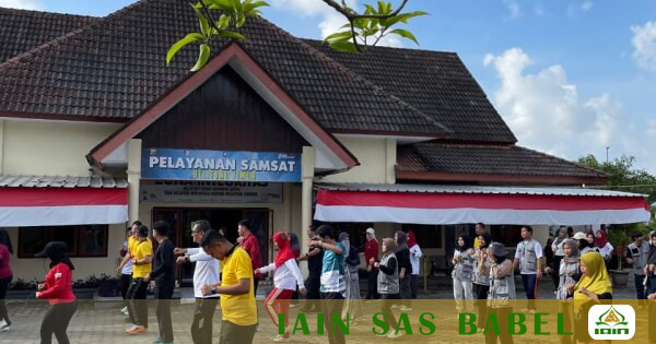 IAINSASBABEL.AC.ID BANGKA.Mahasiswa Kuliah Kerja Nyata (KKN) Kelompok 2 IAIN Syaikh Abdurrahman Siddik Bangka Belitung Kelompok 2 ikut serta dalam kegiatan senam bersama yang digelar oleh Samsat Manggar, Kabupaten Belitung Timur, pada Jum'at, 15 Agustus 2025.