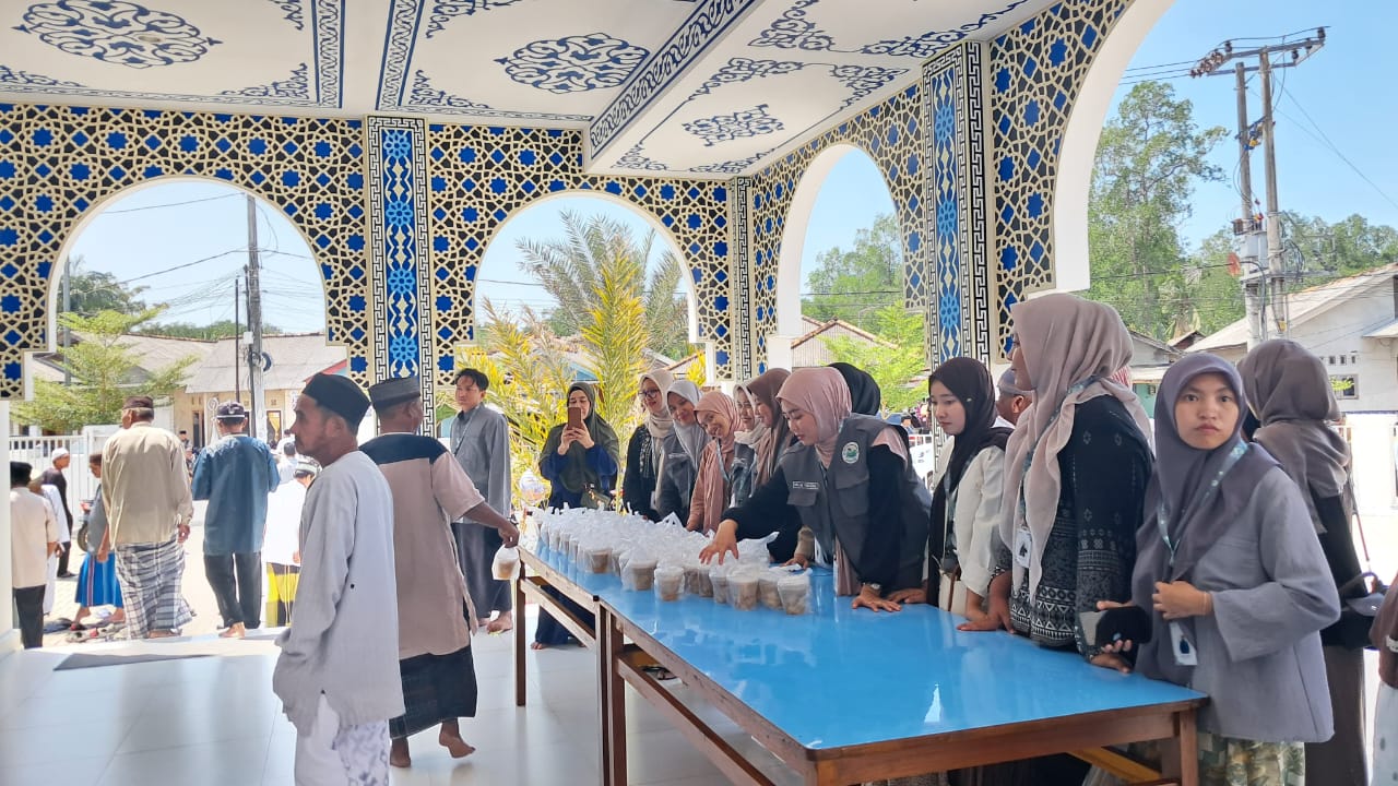 Tak hanya itu, mahasiswa KKN juga konsisten berpartisipasi dalam kegiatan Jumat Berkah, di mana setiap Jumat mereka membantu membagikan paket sembako kepada warga yang sudah menunaikan solat jumat di masjid Nuraini Kurau Barat Bangka Tengah.