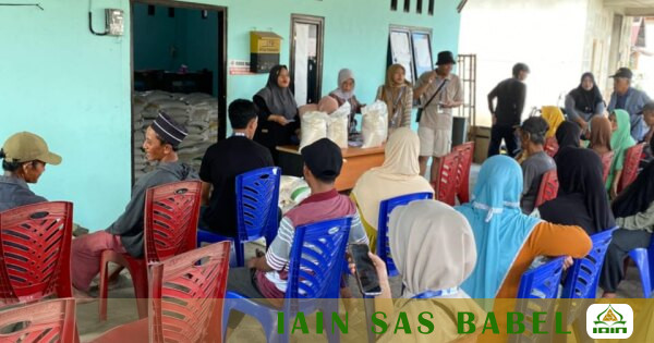 IAINSASBABEL.AC.ID BANGKA. Pembagian bantuan pangan kepada keluarga penerima manfaat di Kantor Desa Batu Beriga berlangsung lancar berkat dukungan penuh dari para mahasiswa Kuliah Kerja Nyata (KKN) IAIN Syaikh Abdurrahman Siddik Bangka Belitung yang tengah mengabdi di desa tersebut.