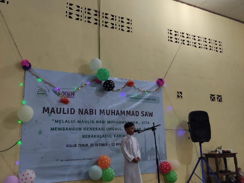 Lukman Mardiansyah selaku Ketua Pelaksana kegiatan tersebut mengatakan kegiatan memperingati Maulid Nabi Muhammad SAW berjalan selama kurang lebih 3 hari 4 malam. Pembukaan dimulai pada hari Senin, 31 oktober 2021 yang dihadiri langsung oleh Kepala Desa dan perangkat Desa Kulur, Ketua Masjid Al-Muhajirin Desa Kulur, Ketua Mushola Dusun Kulur Timur, beserta masyarakat Desa Kulur dan Mahasiswa KKN Kelompok 10 Dusun Kulur Barat.