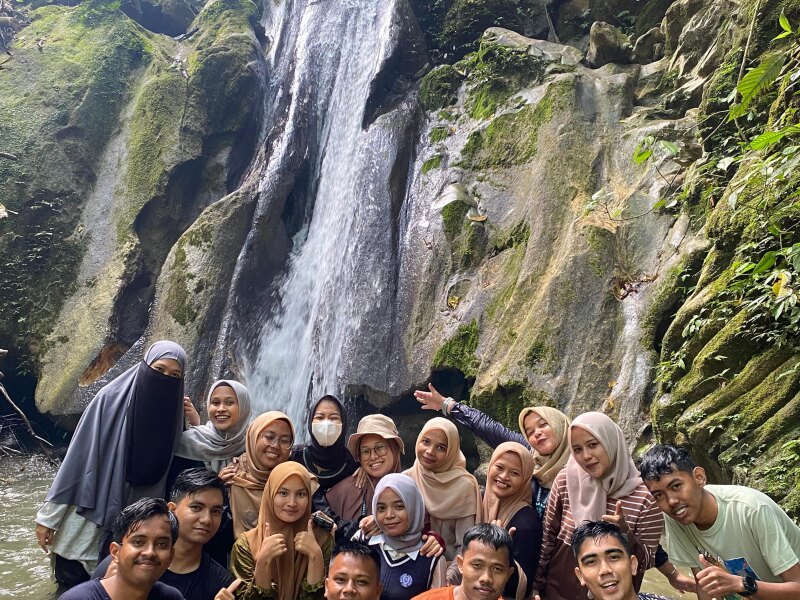 Antusiasme para mahasiswa-mahasiswi Kuliah Kerja Nyata (KKN) serta pemuda-pemudi Gampong Leles yang mana berjumlahkan 11 orang perempuan dan 12 laki-laki untuk melihat keindahan air terjun patitah.