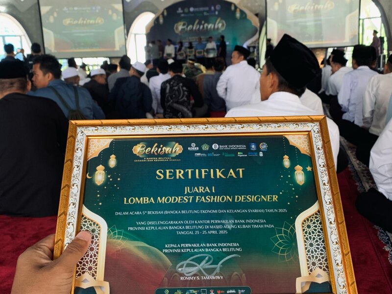 Ia juga mengapresiasi acara 5Th BEKISAH “Bangka Belitung Ekonomi dan Keuangan Syariah) Tahun 2025, yang digelar oleh kantor perwakilan Bank Indonesia Provinsi Bangka Belitung yang secara konsisten menggelar kegiatan lomba Modest Fashion Designer.