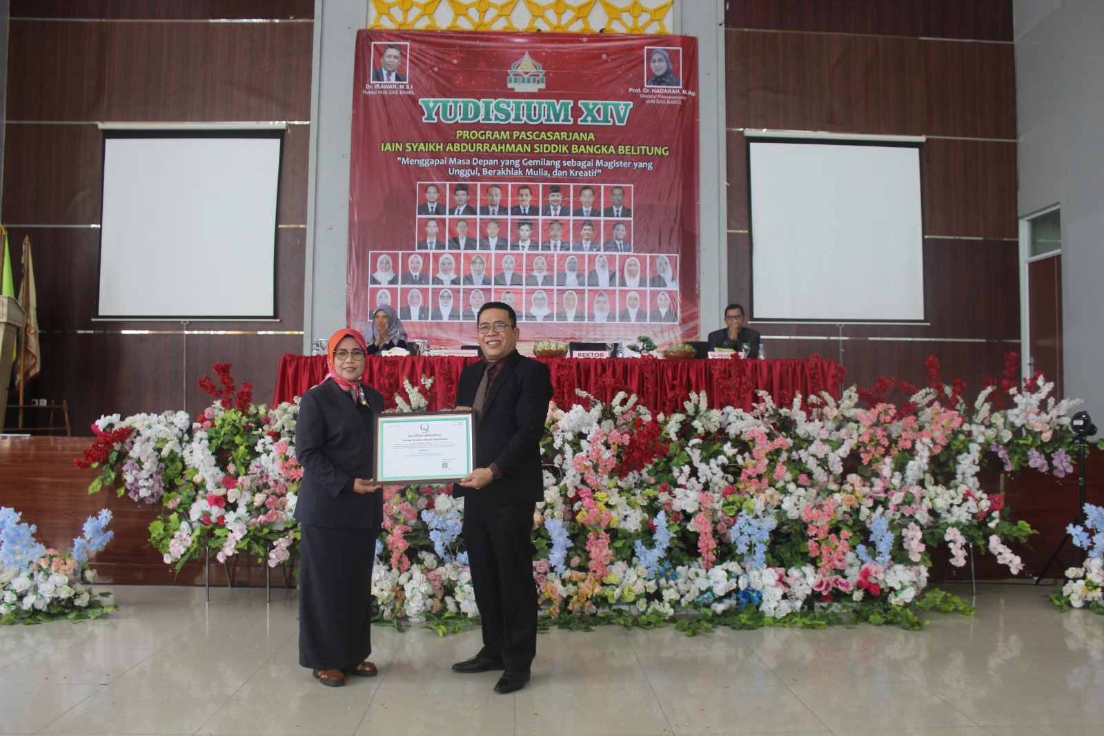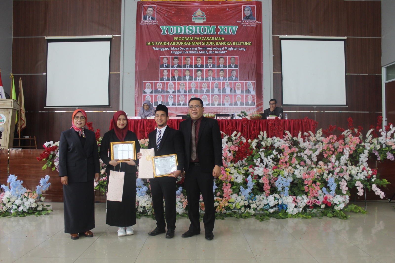 Dalam sambutannya Direktur Pascasarjana IAIN SAS Babel Prof. Dr. Hadarah, M.Ag menyampaikan apresiasi atas inisiasi Mahasiswa Pascasarjana sehingga Yudisium XIV dapat terlaksana.