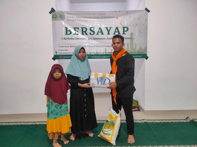 IAINSASBABEL.AC.ID BANGKA. Dalam rangka menuai keberkahan di bulan Suci Ramadan Komunitas Pencinta Alam-Sosial Syaikh Abdurrahman Siddik ( KOPASSAS) Institut Agama Islam Negeri( IAIN) Syaikh Abdurrahman Siddik Bangka Belitung gelar Berbuka Bersama Sekaligus Santunan Anak Yatim (Bersayap),kegiatan mengusung tema" "Indahnya Berbagi dalam Bingkai Meraih Keberkahan". dilaksanakan Panti Asuhan Al Khoiriyah Pangkal Pinang.Sabtu,15/4/2023.