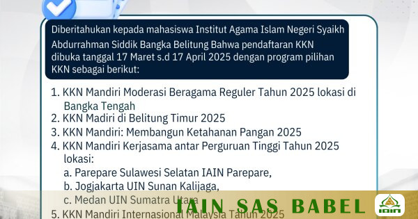 Abdurrahman Siddik Bangka Belitung Bahwa pendaftaran KKN