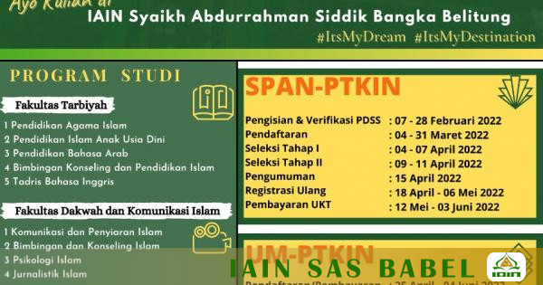 Satuan Pendidikan MA / MAK / SMA / SMK / Pesantren Muadalah atau yang setara dan memiliki izin dari Kementerian Agama RI sudah memiliki ijazah yang masih bingung untuk memilih universitas yang dituju IAIN SAS Bangka Belitung bisa menjadi satu pilihan. Diketahui, IAIN SAS Bangka Belitung masih menerima Pendaftaran Mahasiswa Baru (PMB) melalui jalur ujian mandiri dapat memanfaatkan waktu untuk mendaftarkan diri segera. “Bagi adik-adik yang ingin mendaftar Jalur Mandiri harap segera mendaftar dan mempersiapkan diri".