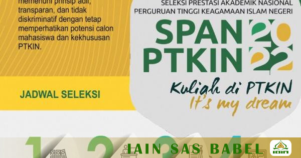 IAIN Syaikh Abdurrahman Siddik Bangka Belitung siap terima calon mahasiswa baru Jalur SPAN-PTKIN 2022. Pastikan sekolahmu memiliki Nomor Pokok Sekolah Nasional (NPSN), data sekolah telah diinput, dan validasi akun dikirimkan ke email sekolah dan kepala sekolah. Terus followup data di sekolahmu sesuai dengan time line diatas.