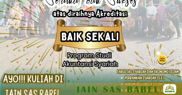 IAINSASBABEL.AC.ID BANGKA. Program Studi (Prodi) Akuntansi Syariah, Fakultas Syariah dan Ekonomi Syariah (FSEI), IAIN SAS Bangka Belitung berhasil meraih akreditasi BAIK SEKALI dari Lembaga Akreditasi Mandiri Ekonomi Manajemen Bisnis dan Akuntansi (LAMEMBA).