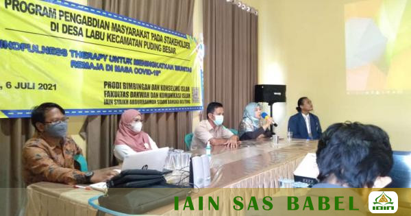 Pengabdian masyarakat kali ini mengusung tema "Mindfulness Therapy Untuk Meningkatkan Imunitas Remaja di Masa Covid-19" kegiatan ini diadakan di balai desa labu Kecamatan Puding Besar pada hari selasa, 06 juli 2021 dihadiri oleh kurang lebih 30 peserta yang berasal dari ikatan remaja masjid desa labu dan pusat informasi konseling remaja desa labu Kecamatan Puding Besar.