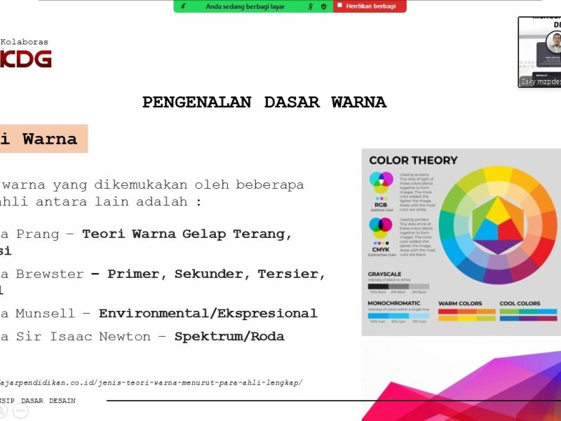 M. Zaky Pratama, A.Md., seorang praktisi sekaligus desainer grafis profesional yang merupakan pengurus asosiasi KDG, menjadi narasumber utama dalam webinar ini.