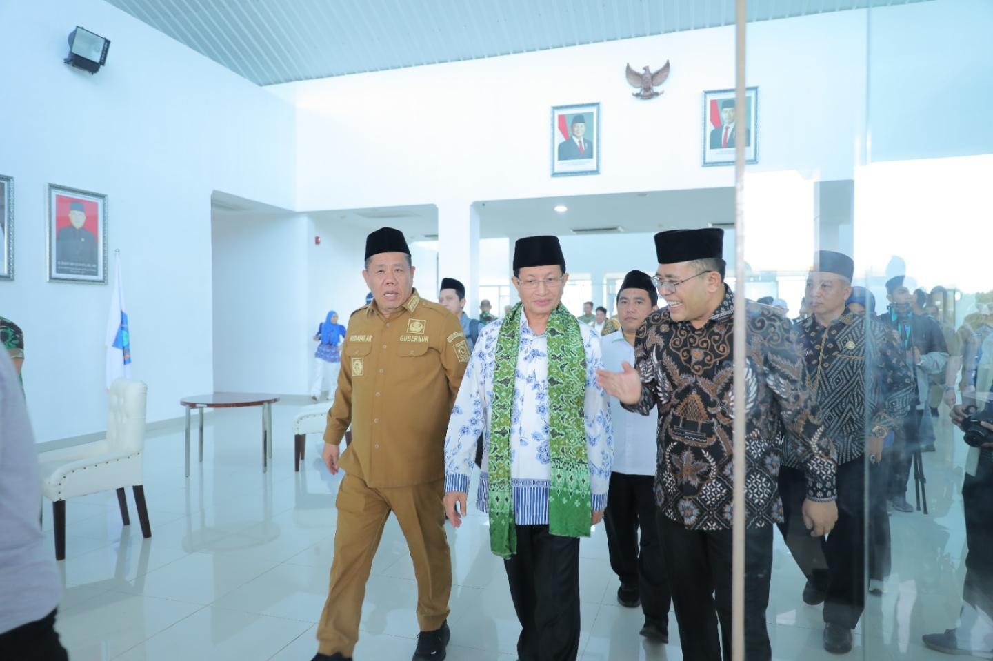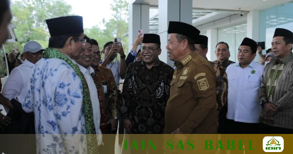 IAINSASBABEL.AC.ID BANGKA. Rektor IAIN SAS Bangka Belitung Dr. Irawan,M.S.I, turut menyambut kedatangan Menteri Agama Republik Indonesia, Prof. Dr. Nasaruddin Umar, M.A beserta rombongan bersama Gubernur Kepulauan Bangka Belitung (Kep. Babel) Hidayat Arsani, Kepala Biro AUAK H. Yayat Supriyadi, M.Si dan Plt. Kepala Kanwil Kemenag Babel dalam kunjungan kerja ke Provinsi Kepulauan Bangka Belitung, Selasa (18/11/2025) sore.