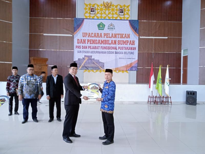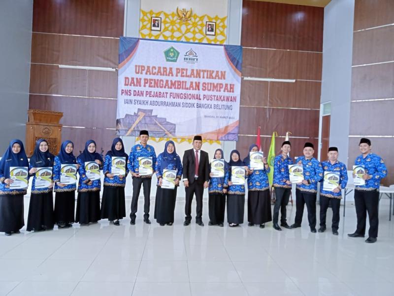 Upacara pelantikan diawali dengan menyanyikan lagu Indonesia Raya, Pembacaan Kitab Suci Al Quran, pembacaan SK PNS, pembacaan naskah pelantikan, pengambilan sumpah jabatan, penandatangan berita acara, dan penyerahan SK kepada para PNS yang dilantik yang digelar di Aula IAIN SAS Bangka Belitung (1/3/2023).