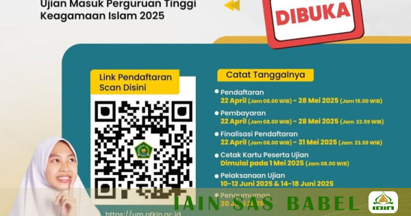IAINSASBABEL.AC.ID BANGKA. Pendaftaran Ujian Masuk Perguruan Tinggi Keagamaan Islam Negeri( UM-PTKIN ) 2025 Enam hari lagi penutupan. Sesuai jadwal, secara resmi pendaftaran UM-PTKIN 2023 akan ditutup pada hari Rabu 28 Mei 2025 pukul 15.00 WIB.