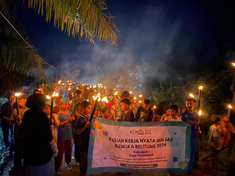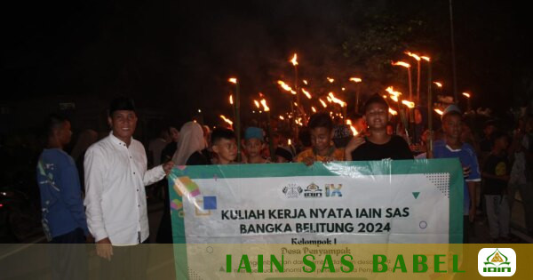 IAINSASBABEL.AC.ID BANGKA. Mahasiswa Kuliah Kerja Nyata (KKN) dari Institut Agama Islam Negeri (IAIN) Syaikh Abdurrahman Siddik (SAS) Bangka Belitung bersama masyarakat Desa Peyampak merayakan Tahun Baru Islam 1446 H dengan mengadakan pawai obor diikuti oleh ratusan warga desa Penyampak dengan penuh antusias pada Selasa malam (16/7/2024)