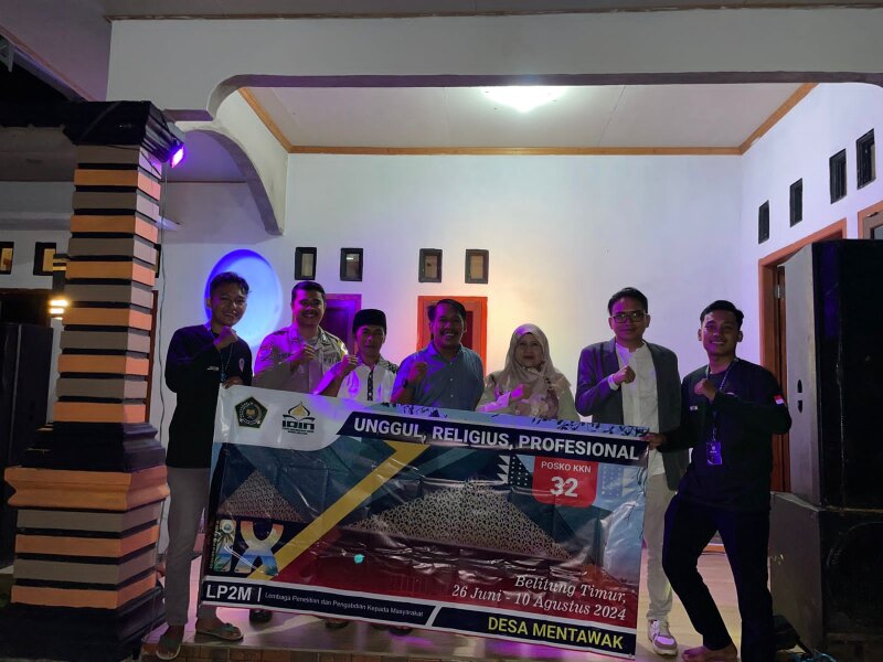 IAINSASBABEL.AC.ID BANGKA. Pemerintah Desa (Pemdes) Desa Mentawak Kecamatan Kelapa Kampit Kabupaten Belitung Timur mengadakan penyambutan dan penerimaan mahasiswa KKN IAIN Syaikh Abdurrahman Siddik Bangka Belitung, Senin (24/7/2023) di depan Balai Desa Mentawak