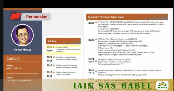 Kegiatan ini menghadirkan narasumber Yanuar Firdaus Arie Wibowo, S.T., M.T.(Head of Information Technology Universitas Islam Internasional Indonesia) dengan tema "Awarness Information Technology Master Plan Bagi IAIN Syaikh Abdurrahman Siddik Bangka Belitung".