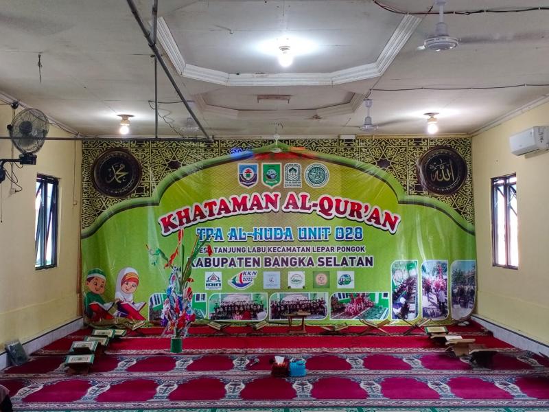 IAINSASBABEL.AC.ID Bangka,11/10/2022. Mahasiswa KKN Moderasi Beragama IAIN Syaikh Abdurrahman Siddik Bangka Belitung yang berlokasi di Desa Tanjung Labu Kecamatan Lepar Pongok Kabupaten Bangka Selatan bekerja sama dengan TKA-TPA Al Huda selenggarakan khataman Al-Qur’an di Minggu (9/10/2022).