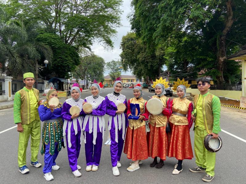 UKM Seni dan Budaya IAIN SAS Babel dibawah bimbingan sanggar buluh perindu yang membawakan tarian rampak rebana berkollaborasi dengan sanggar buluh perindu.